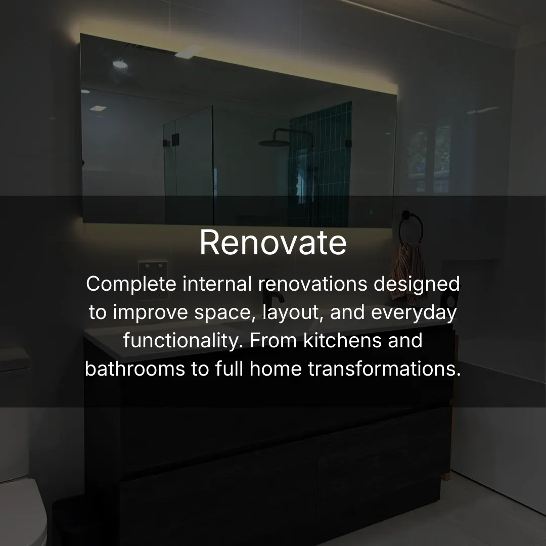 Complete internal renovations designed to improve space, layout, and everyday functionality. From kitchens and bathrooms to full home transformations.